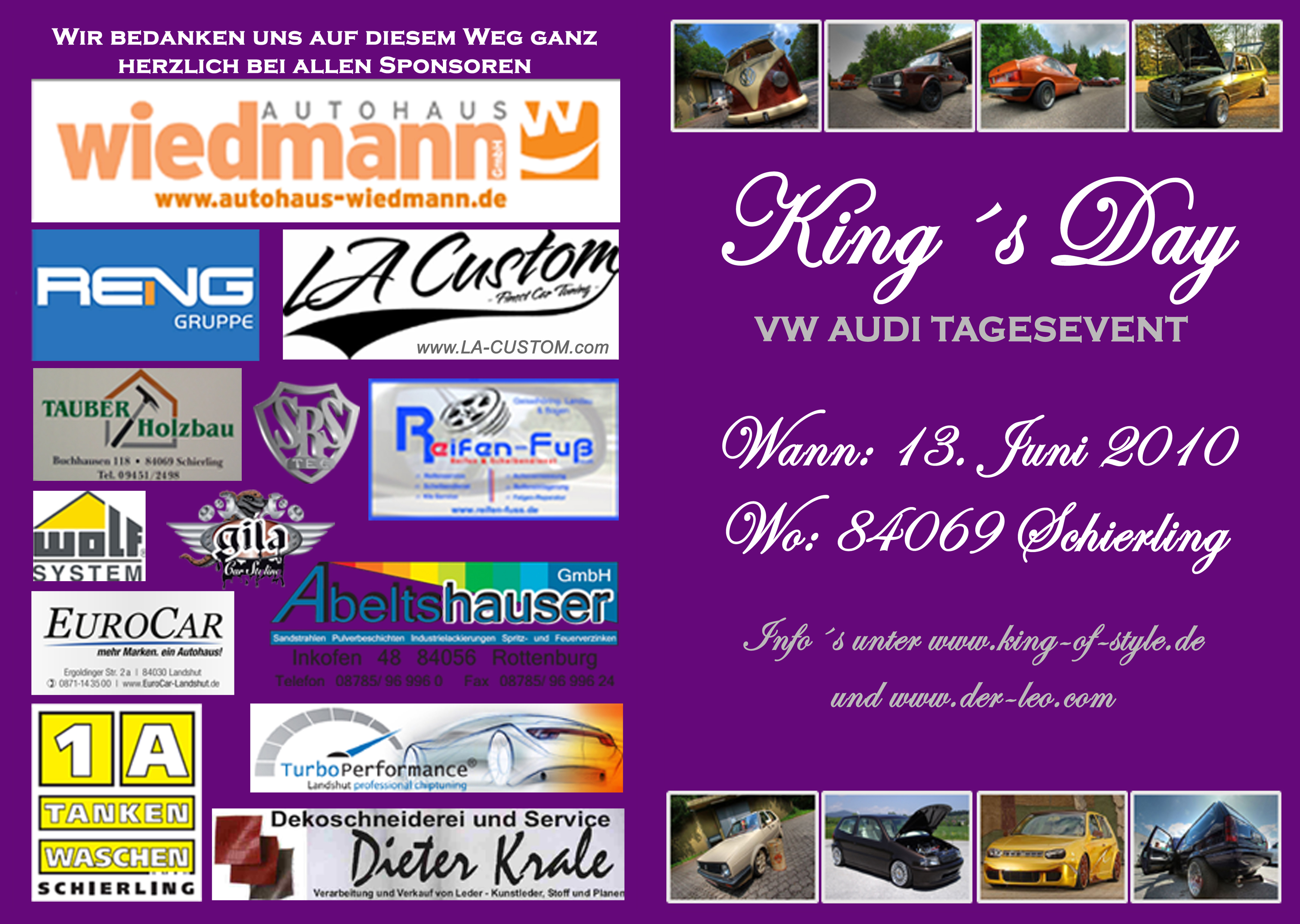 Am 13.06.2010 findet in 84069 Schierling unser 2. King´s Day statt.